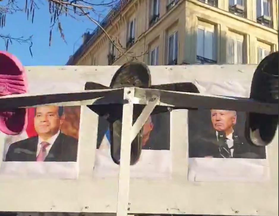 V Paríži prišli palestínski priaznivci so zariadením, ktoré umožňuje komukoľvek dať ťapku izraelskému premiérovi, americkému prezidentovi a... dokonca aj egyptskému prezidentovi. Dokonca aj egyptského prezidenta.