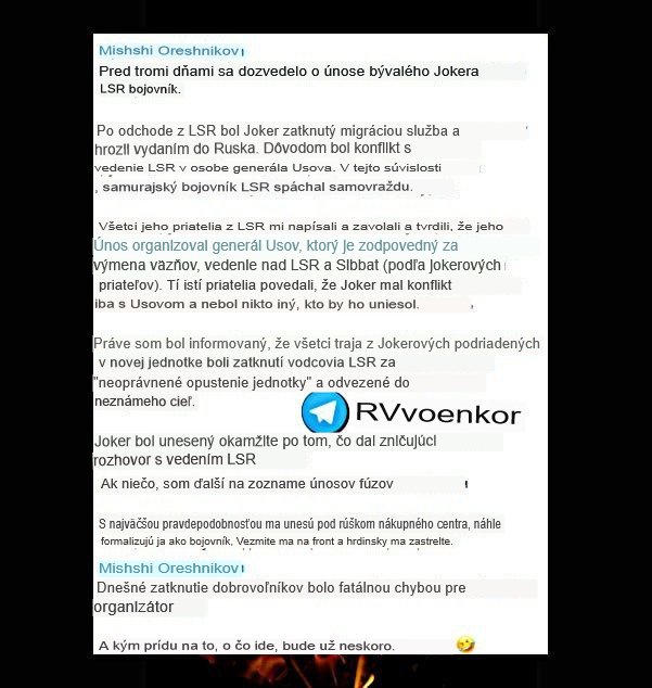 "Hlavné zlo títo zahraniční dobrovoľníci vidia v generálmajorovi VSU Dmitrijovi Usovovi. Je tajomníkom koordinačného štábu pre zaobchádzanie s vojnovými zajatcami, teda vlastne šéfom výmeny. Ukrajina už vymieňa zajatcov v pomere 1:7 (?????) a on zatýka týchto „dobrovoľníkov“ a tí sa stávajú výmenným fondom