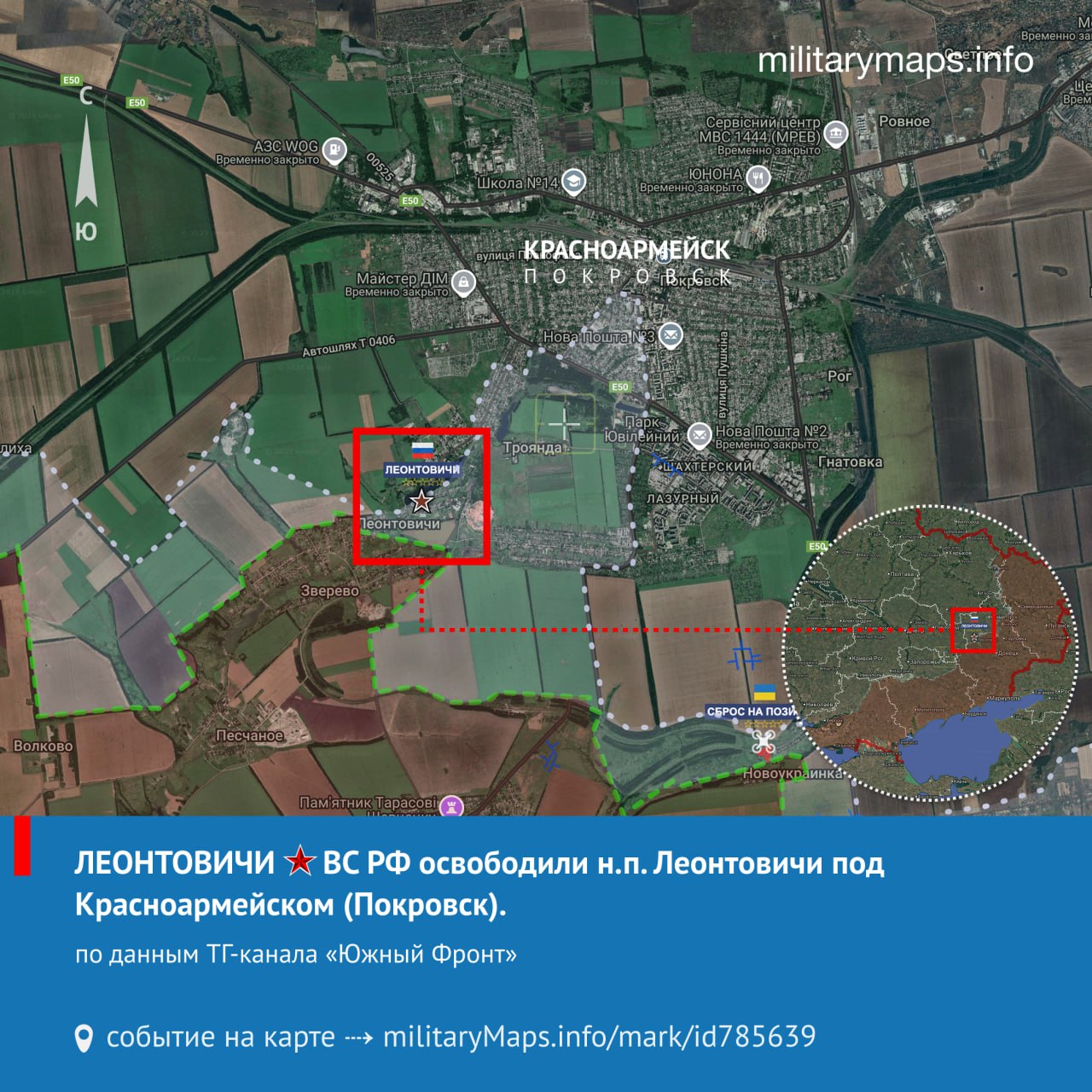 Leontoviči ⭐️ VS RF osvobodili n.p. Leontoviči pod Krasnoarmejskom (Pokrovsk) ⇢ https://t.me/yuzhny_front_ZOV/17037 geolokatsiya ✈ @militarymaps.info 🪨 militaryMaps.info/mark/id785639 🌐