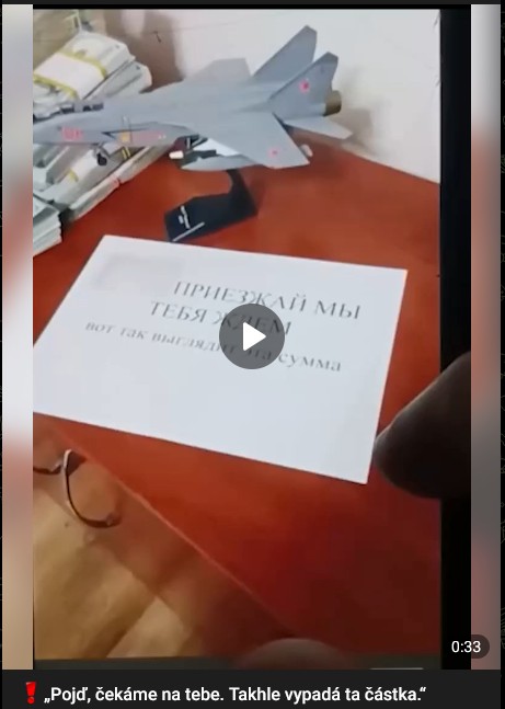 Tohle je video, které náborář použil k nalákání ruského pilota stíhačky MiG-31, který měl unést stíhačku vyzbrojenou Kinžalem. Pilotu byla slíbena odměna 3 miliony dolarů a nový pas. Pilot měl zabít velitele letadla.