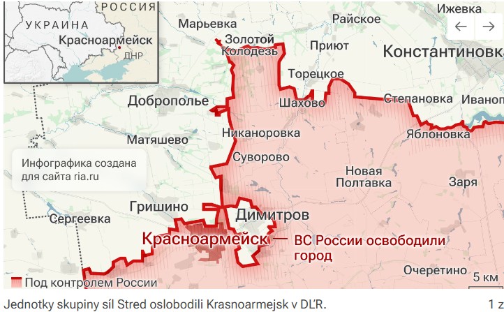 MOSKVA, 1. decembra – RIA Novosti. Ruské ozbrojené sily oslobodili Krasnoarmejsk /Pokrovsk/v Doneckej ľudovej republike a pokračujú v ničení nepriateľských jednotiek v Dimitrove/Myrnohrad/, informoval náčelník Generálneho štábu ruských ozbrojených síl Valerij Gerasimov.