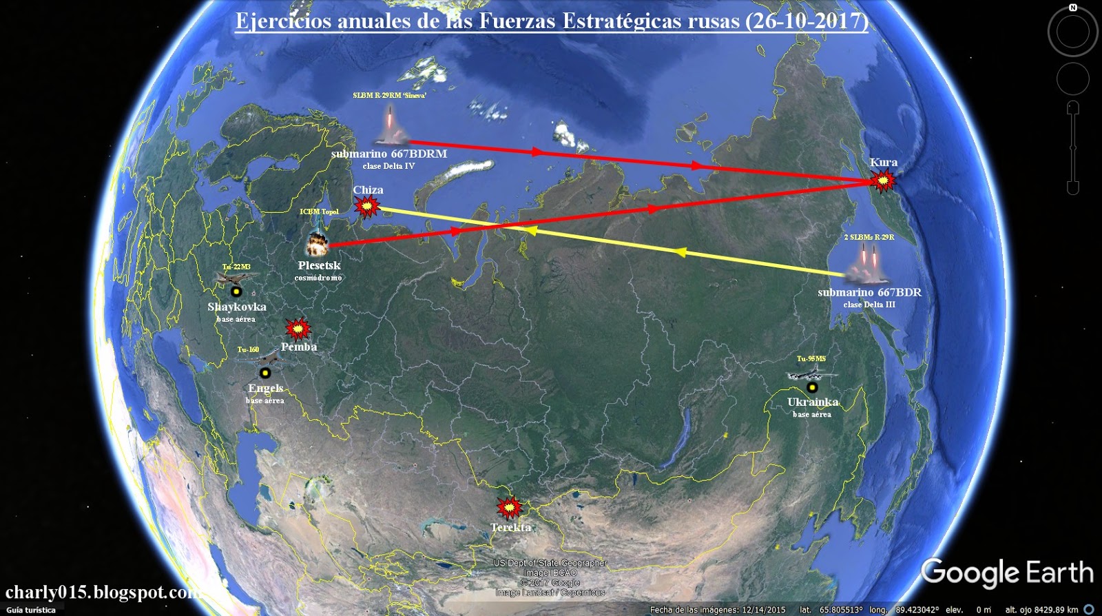 Bloger Charly015 to spísal aj s upresnením typov nosičov a rakiet / striel + približné miesto odpalu / štartu a cieľ.