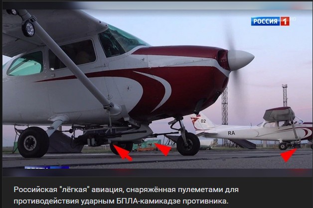 Ruské „ľahké“ letectvo, vybavené guľometmi na boj proti útočným BPLA-kamikadze nepriateľa.