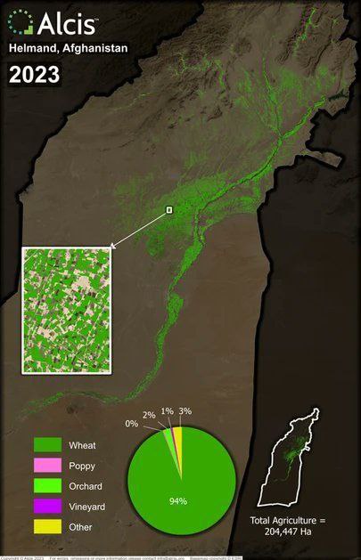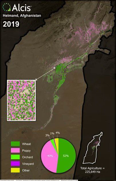 Spoločnosť Alcis, ktorá sa odvoláva na satelitné snímky s vysokým rozlíšením a ďalšie výskumy, uvádza, že produkcia maku v celej krajine klesla o 99 %.