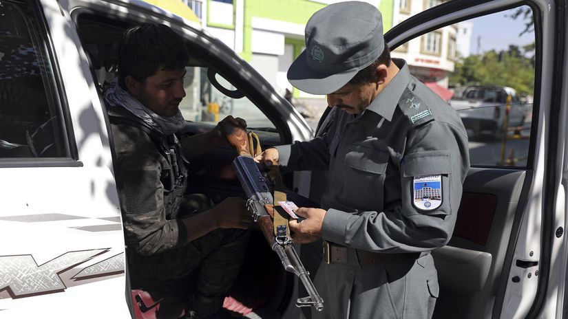 Príslušník afganských bezpečnostných zložiek kontroluje zbraň na kontrolnom stanovišti v okolí Zelenej zóny, v ktorej sa nachádzajú zahraničné veľvyslanectvá v Kábule.