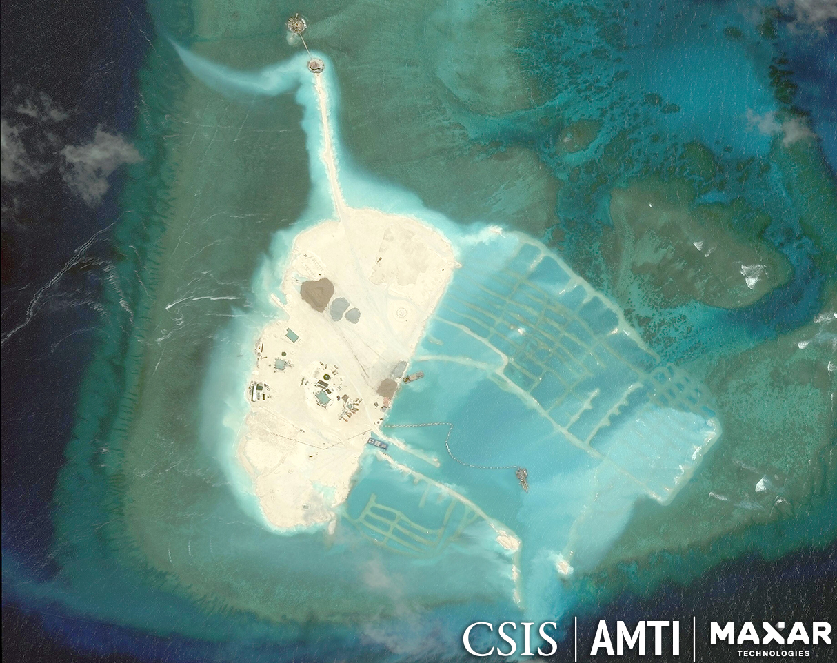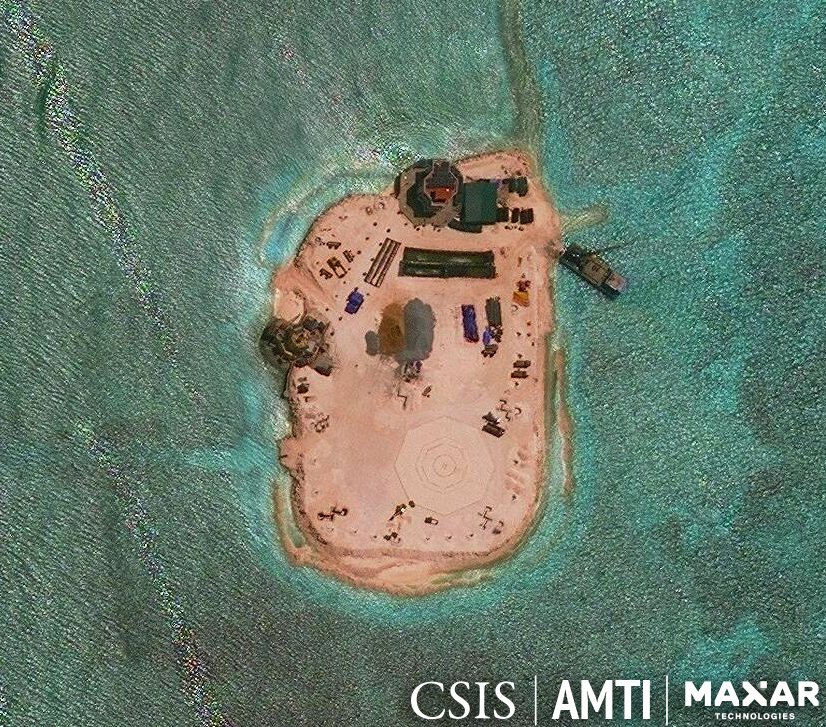 Nové fotografie čínskej vojenskej infraštruktúry na 3 hlavných umelých ostrovoch (atol Subi (Ču-pii Ťiao, 渚碧礁), Ohnivý kríž (Jong-šu tao, 永暑礁) a Mischief (Mei-ťi Ťiao, 美濟礁/美济礁)) v spornom Spratlyovom súostroví v Juhočínskom mori.