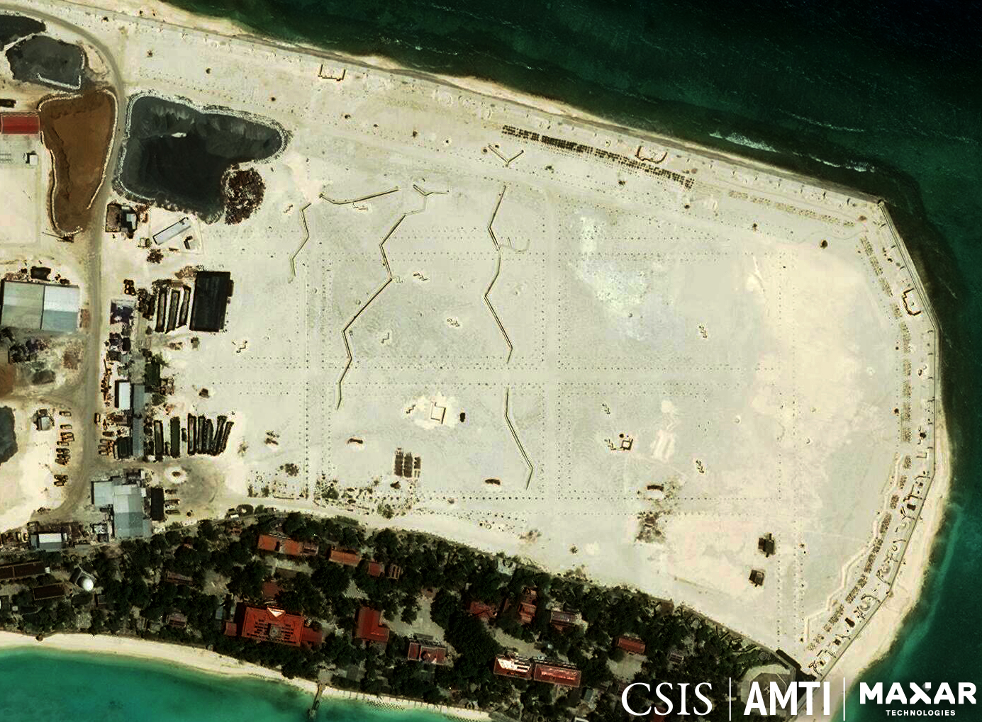 Na niekoľkých miestach možno vidieť pripravované zákopy a pobrežné obranné zariadenia typické pre vietnamské výbežky na ostrove Spratly. Na mnohých rozširujúcich sa útesoch vrátane Discovery Great Reef, Ladd Reef, Tennent Reef a South Reef sa objavili dočasné pristávacie plochy pre vrtuľníky.