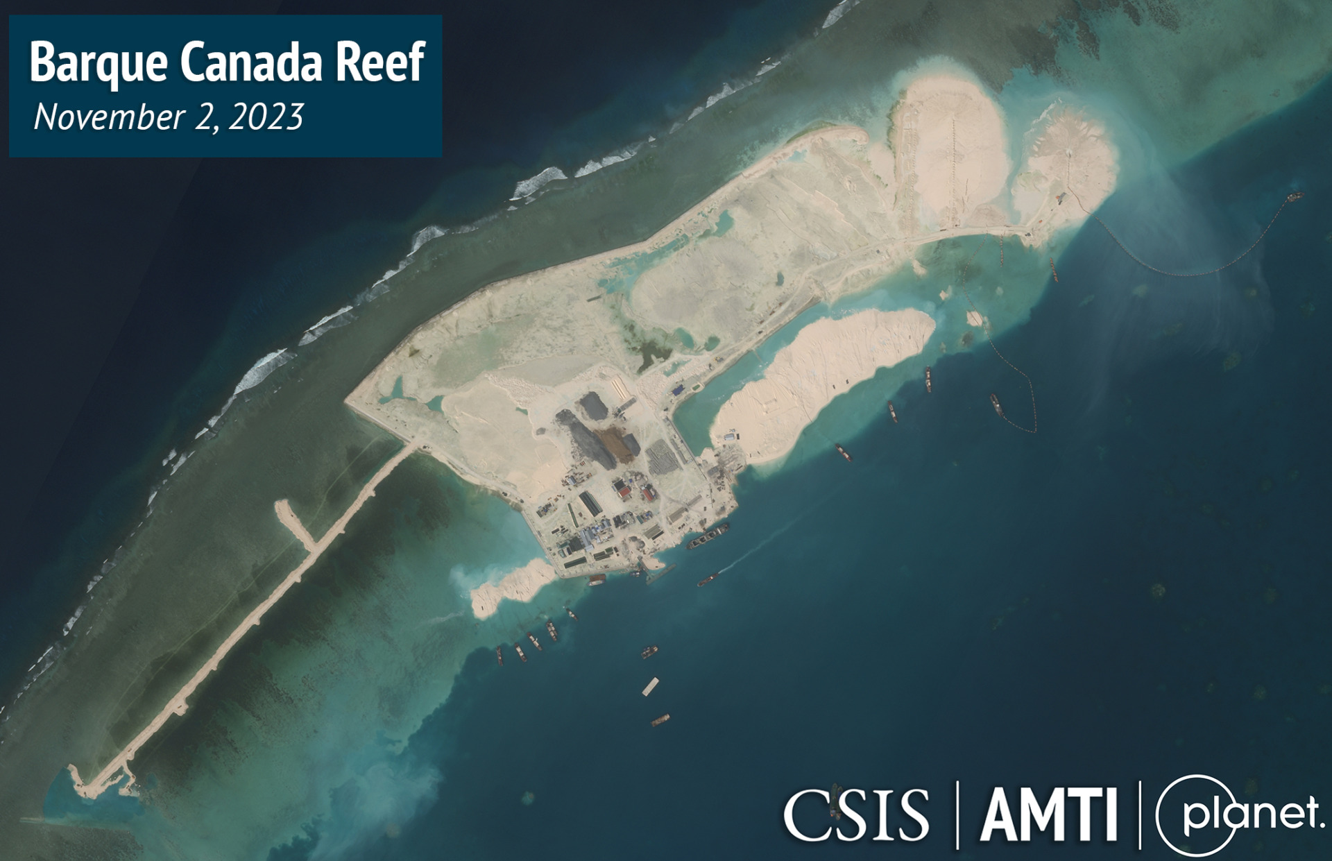 Útes Barque Canada Reef prešiel zďaleka najväčšou premenou. Na útese Barque Canada, ktorý predtým patril k najmenším vietnamským základniam, sa za posledný rok vytvorilo viac ako 210 akrov novej pôdy, čím sa stal najväčším Vietnamcami obsadeným prvkom v Juhočínskom mori. Od začiatku prác v roku 2021 pokračovalo bagrovanie skládok a prístavov na Pearsonovom útese a ostrove Namyit, kde pribudlo 163 a 119 hektárov. Práce pokračovali aj na Sand Cay a Tennent Reef, ktoré sa od roku 2021 rozšírili o 82 a 62 akrov.