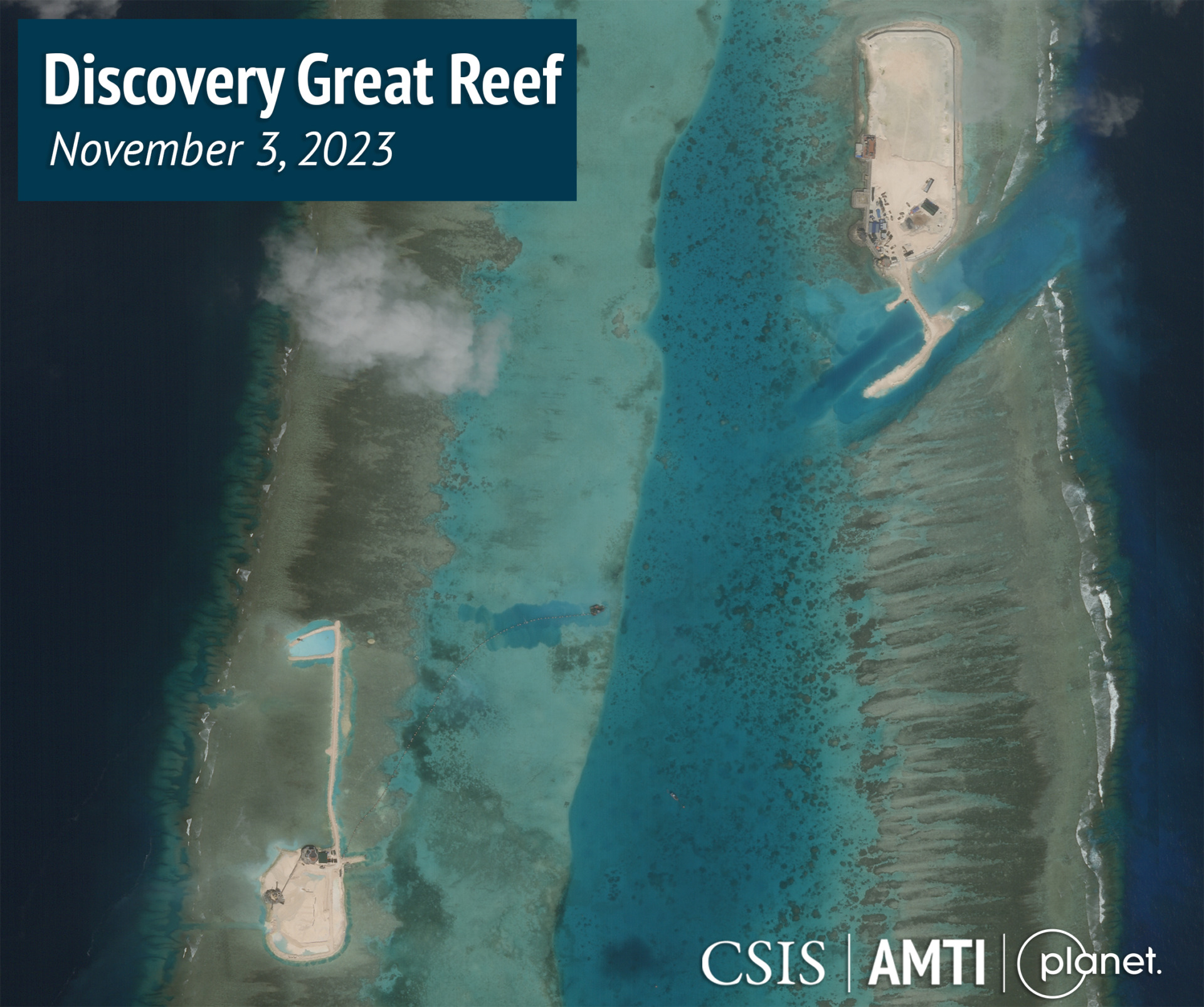 Tieto bagre, ktoré vidno na záberoch, ako pomáhajú pri masívnom rozširovaní útesu Barque Canada Reef a prehlbovaní prístavov na Pearsonovom útese a ostrove Namyit, sú rovnakého typu, za ktorého používanie počas kampane budovania ostrovov v rokoch 2014 - 2017 bola Čína kritizovaná kvôli ich nadmernému ekologickému vplyvu.