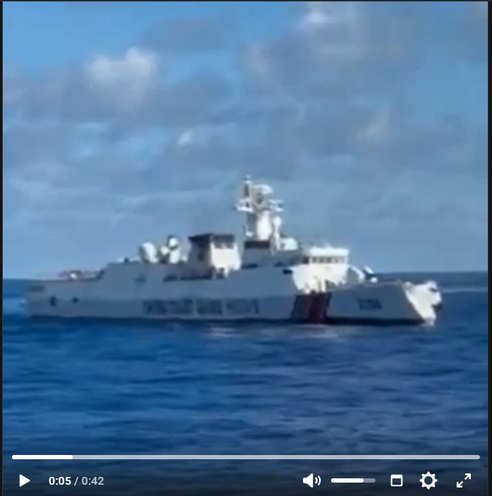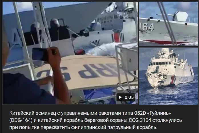 Čínsky torpédoborec s riadenými strelami typu 052D Guilin (DDG-164) a loď čínskej pobrežnej stráže CCG 3104 sa zrazili pri pokuse zachytiť filipínsku hliadkovú loď.