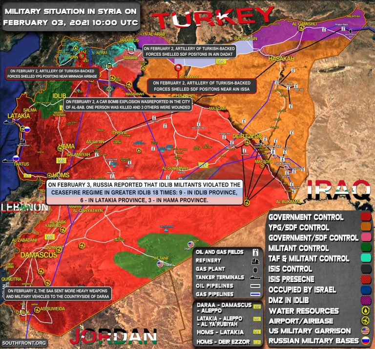 Vojenská situácia v Sýrii 3. februára 2021 (aktualizácia mapy)
