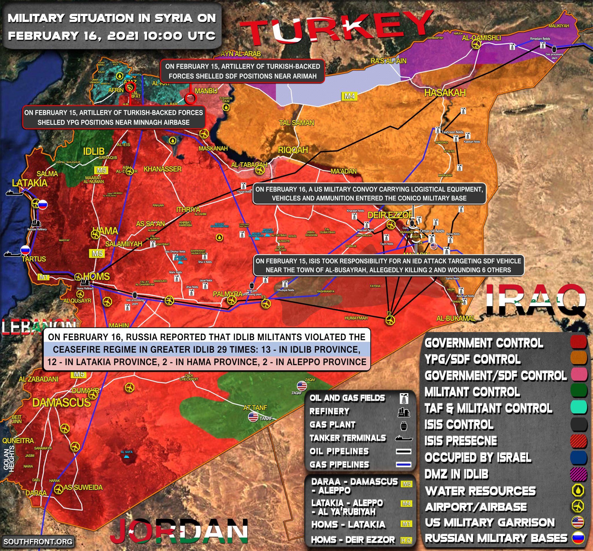 Vojenská situácia v Sýrii 16. februára 2021 (aktualizácia mapy)