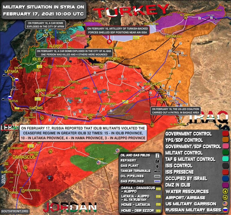 Vojenská situácia v Sýrii 17. februára 2021 (aktualizácia mapy)