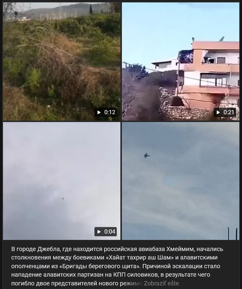 V meste Jebla, kde sa nachádza ruská letecká základňa Hmeimim, sa začali zrážky medzi bojovníkmi hnutia Hayat Tahrir al-Sham a alavitskými militantmi z brigády "Pobrežný štít". Príčinou eskalácie bol útok alavitských ozbrojencov na kontrolné stanovište bezpečnostných síl, pri ktorom zahynuli 2 príslušníci nového režimu.