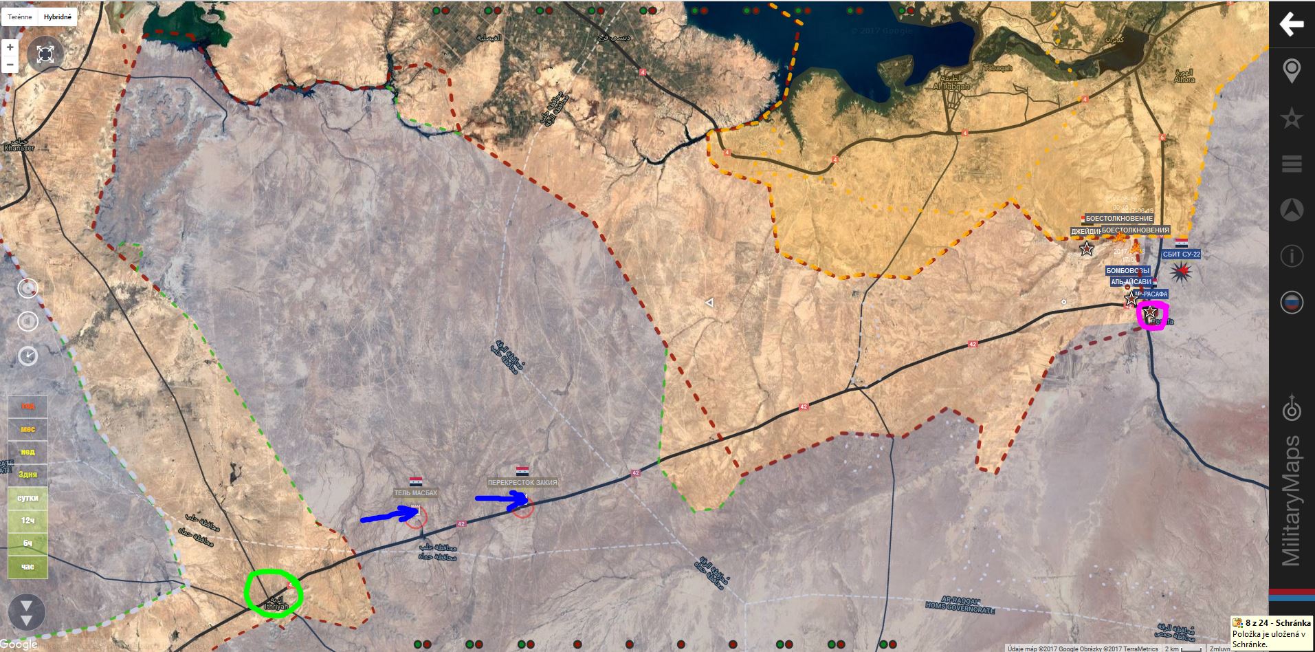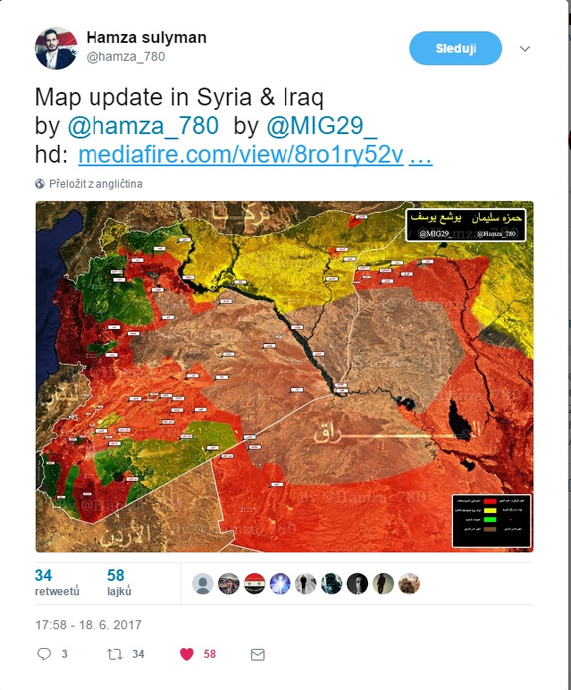 Resafa. SAA+ včera získala Jadeen. Východne od neho bol zostrelený sýrsky SU-22, vznikli tam zrážky medzi SAA+ a SDF+.