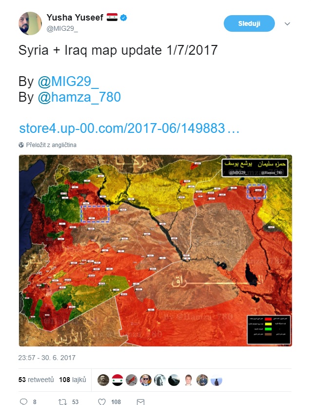 "Vo štvrtok 29.06.2017 minimálne tri americké lietadlá uskutočnili prieskumné lety vo východnej časti Stredozemného mora pri Sýrskom pobreží a ruskej námornej základne v Tartuse. Len za posledný týždeň (od 26.06.2017 do 30.06.2017) pri Sýrskom pobreží bolo uskutočnených viac ako desať takýchto prieskumných letov."