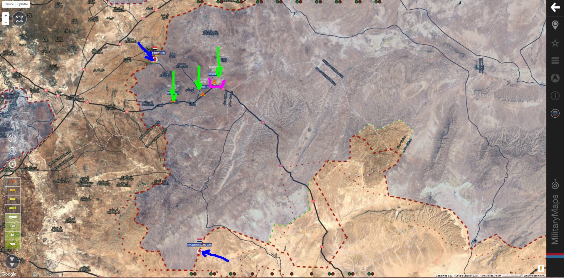 Aqraybat. Včerajšie útoky SAA+. Miesta dopadov ruských rakiet. Vyzerá to, že SAA+ si pripravuje cestu do tejto pevnosti ISIS.