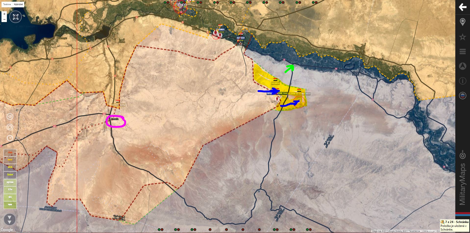 SAA+ si to namierila popod Maadan, kde dosiahla hranicu guvernorátu Deir Ezzor. Po samotné mesto je to cca 60 km.IgorT píše: ↑27 črc 2017, 07:16Resafa. SAA+ rozšírila klin o Harar a Tel Harar. Od Eufratu ju delia Zawr Shammar and Ghanim Ali. Video v odkaze: