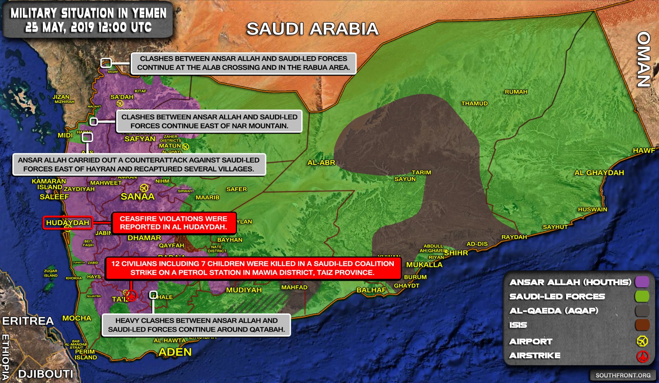 VOJENSKÁ SITUACE V JEMENU 25. KVĚTNA 2019 (AKTUALIZACE MAPY)