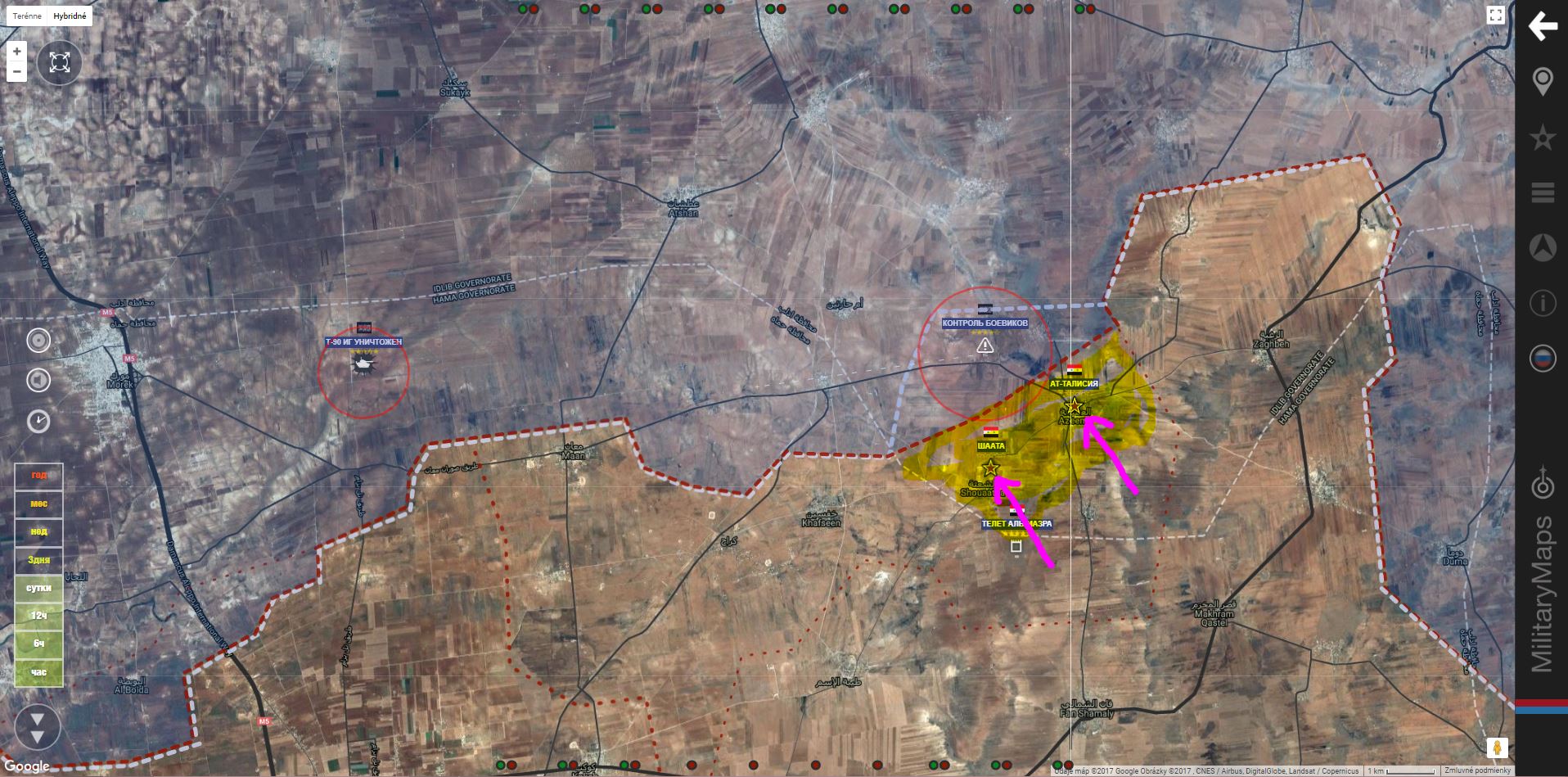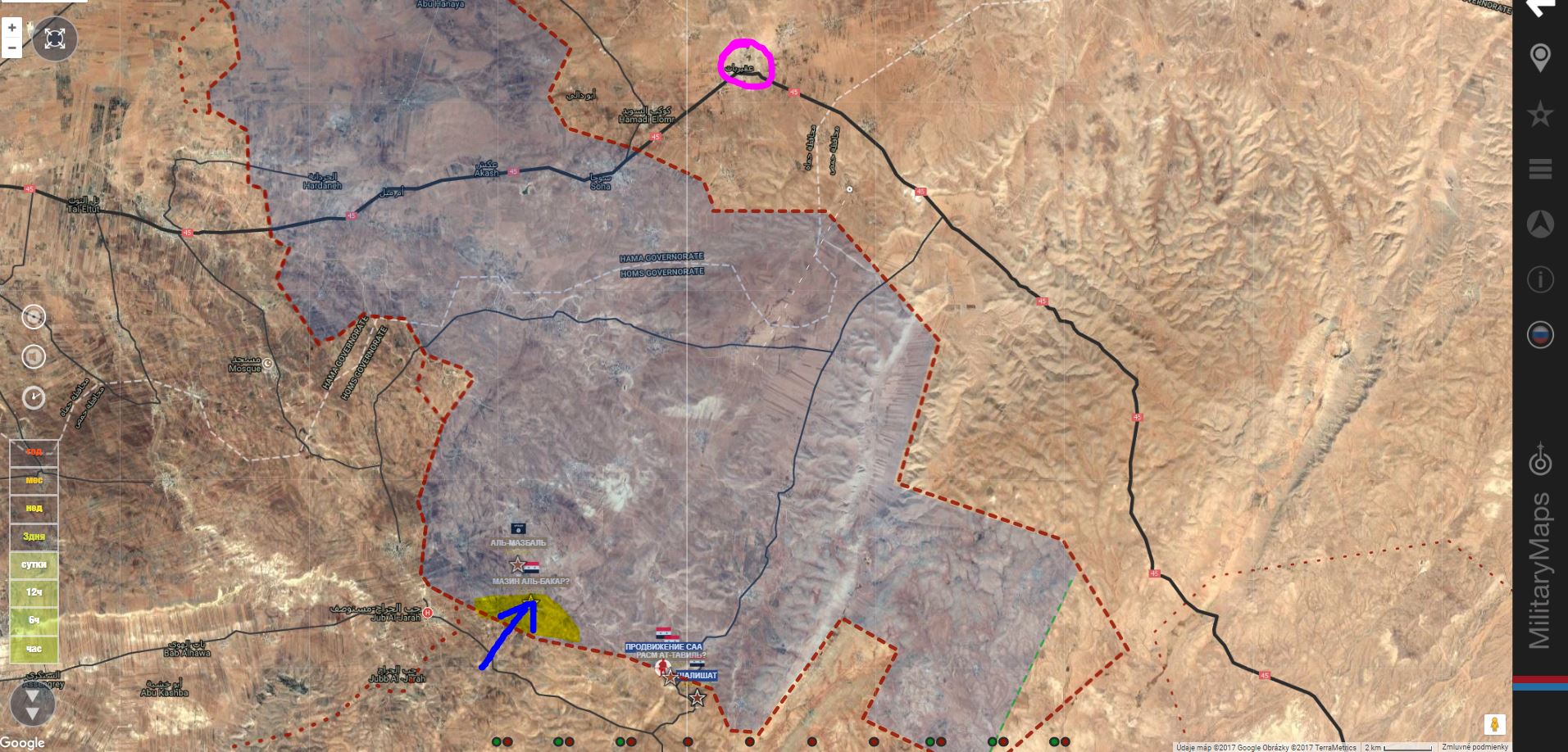 SAA+ získala naspäť aj poslednú dedinu, o ktorú včera prišla - Al Khajru! Podľa vojenského zdroja v Hame, obsadila Talisah, Shatheh a Qahirah v severnej časti Hamy , pričom zabila viac ako 50 džihádistických teroristov z Hay'at Tahrira Al-Šamu.IgorT píše: ↑20 zář 2017, 17:23SAA+ vybojovala naspäť Al Šaata a At Tasilija .IgorT píše: ↑19 zář 2017, 11:04Morek. SAA+ stratila územie Al Šaata, At Tasilija a Al Kahira.IgorT píše: ↑19 zář 2017, 09:52S. Hamá.