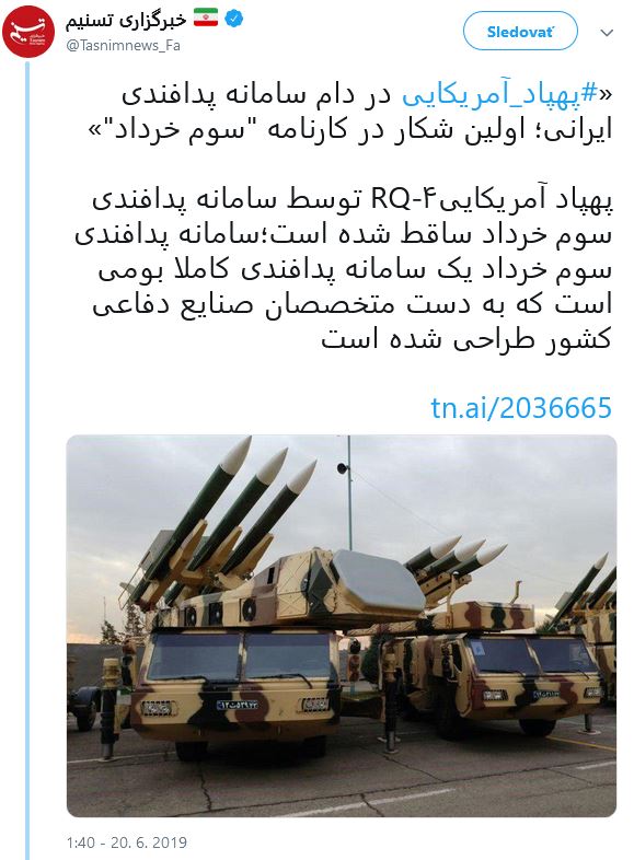 PVO Raad (klon ruského Buk) https://twitter.com/Tasnimnews_Fa/statu ... 7383743489 z 20.06.2019