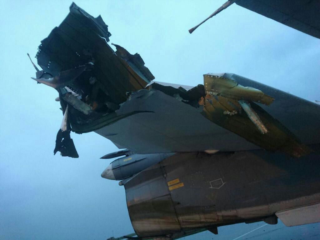 U základny Hmajmim. Údajně poškozená technika: 6 Su-24, 1 Su-35S, 1 An-72, 1 An-30, 1 Mi-8. 2 Su-24 a Su-35S byly uvedeny do provozu