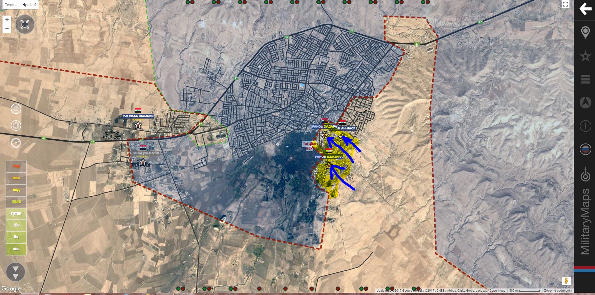 Tal Afar. SAA+ sa obsadením Irba Aziz a Jasimu dostala k západnému okraju mesta.