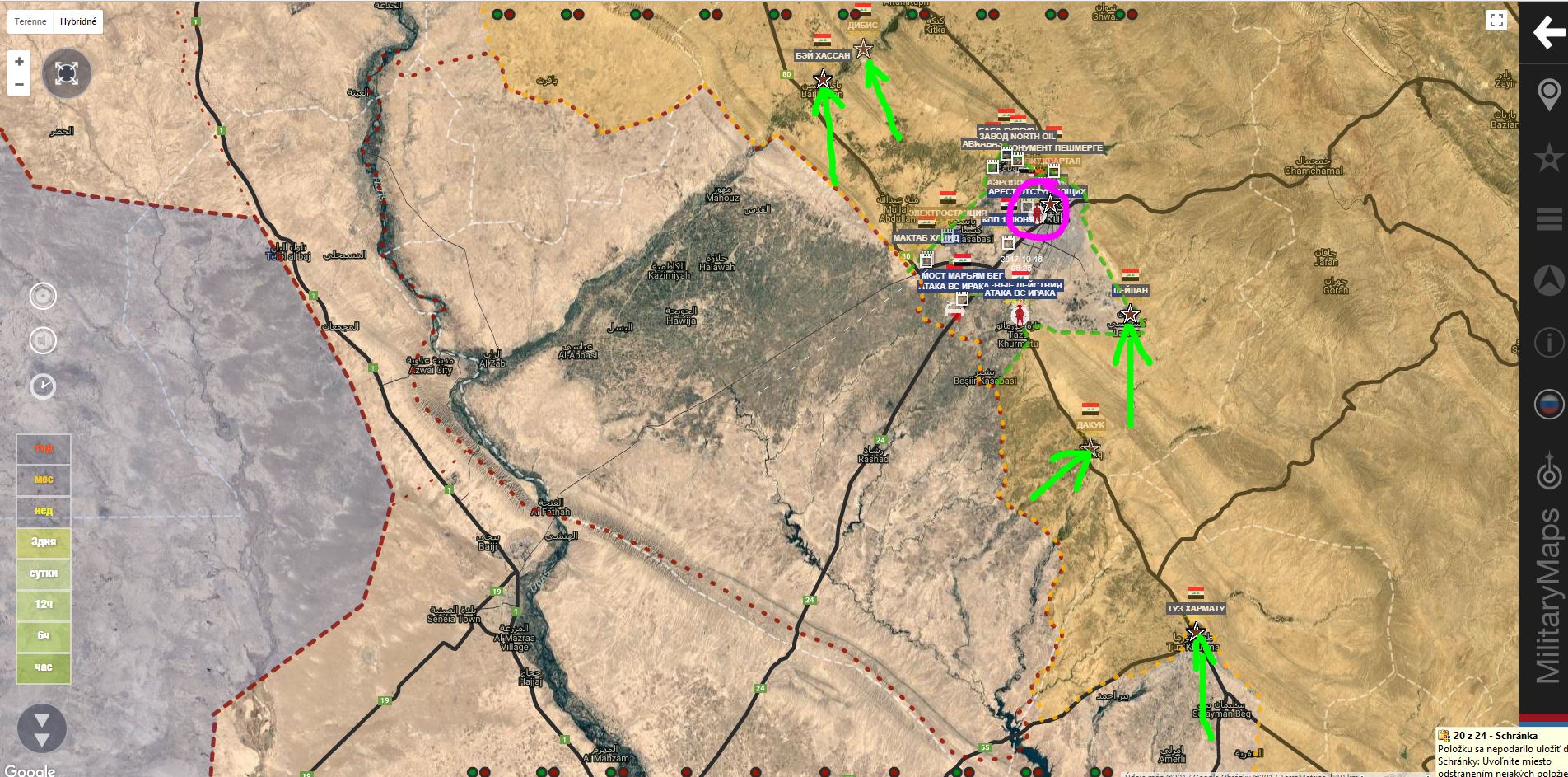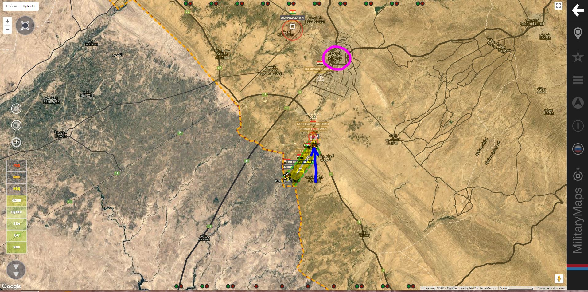 Kirkúk. Iracká armáda zjavne ignoruje vyhlásenia kurdských predstaviteľov a vybrala sa - smer Kirkúk. Rozvinula svoje sily v osi