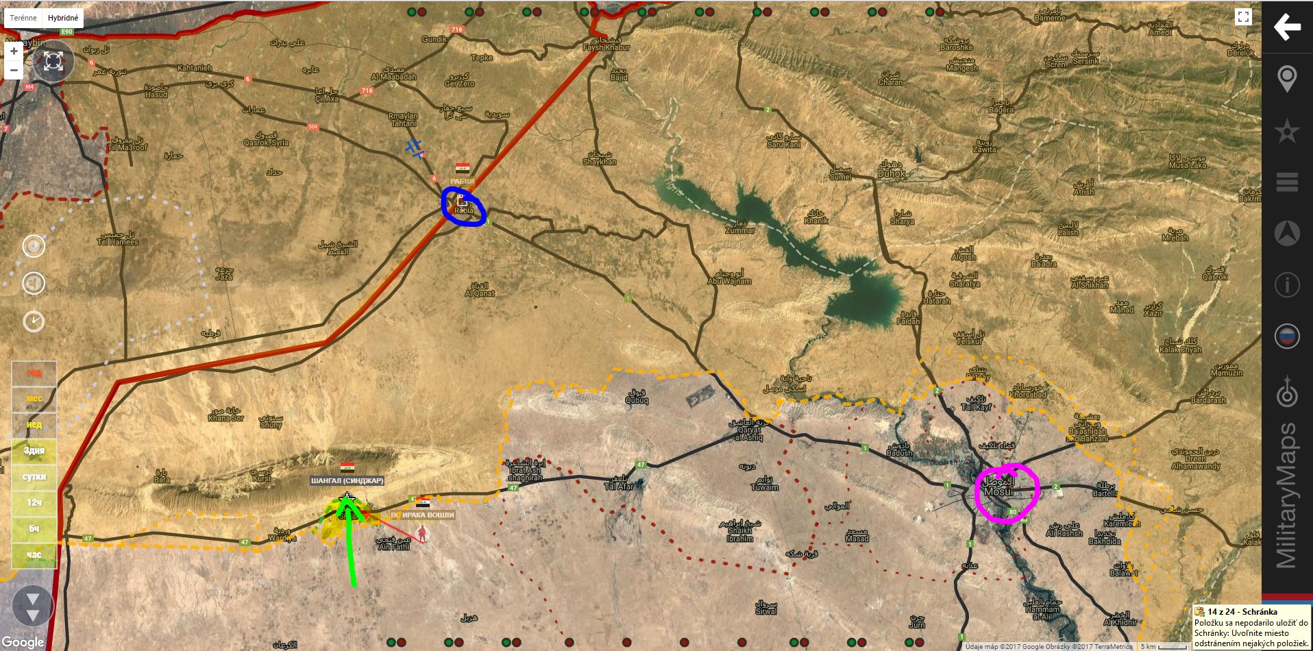 Letectvo Iraku zničilo konvoj 300 autocisterien "kalifátu" v údolí označenom v ruštine "Хоран" ("Choran") - pravdepodobne Wadi Hauran/Houran alebo aj "Horan valley" neďaleko Jordánskych hraníc.