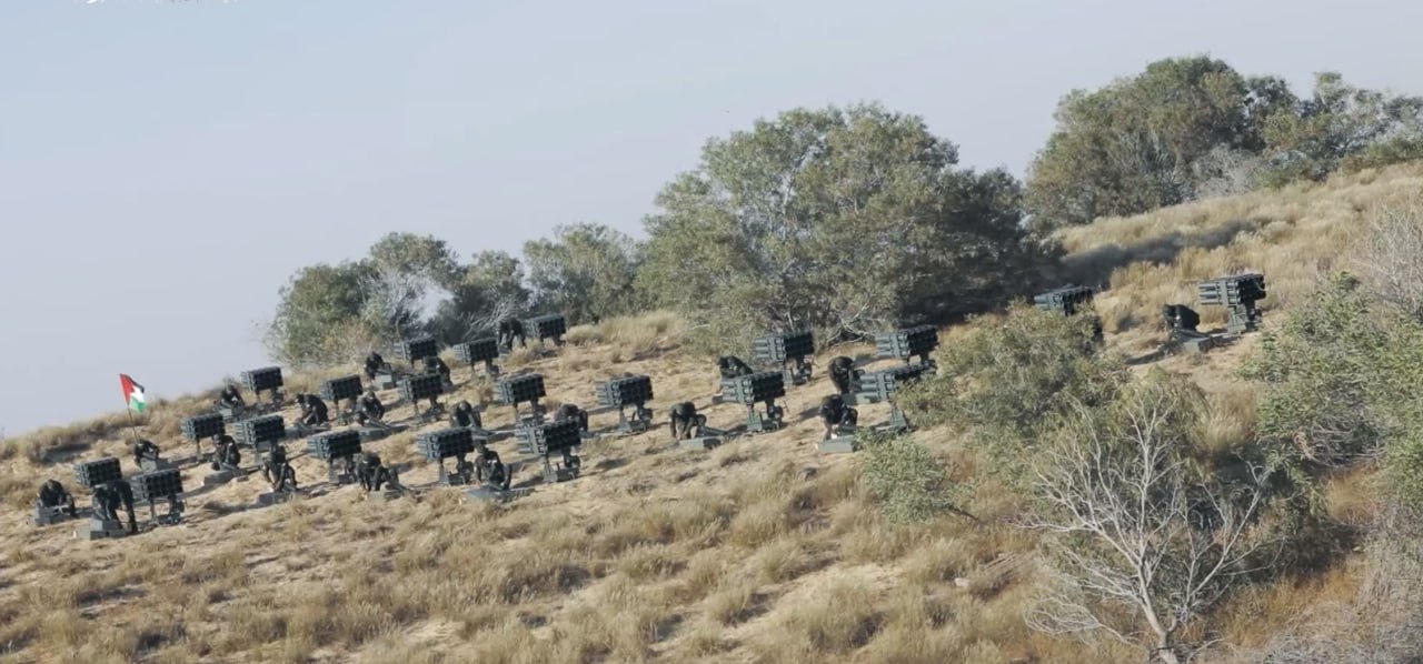 Hamas (Al-Kassám) zverejnil zábery svojho nového raketového systému krátkeho doletu Rajum, 114 mm rakety, ktorú dnes použil na začiatku operácie na preniknutie do Izraela.