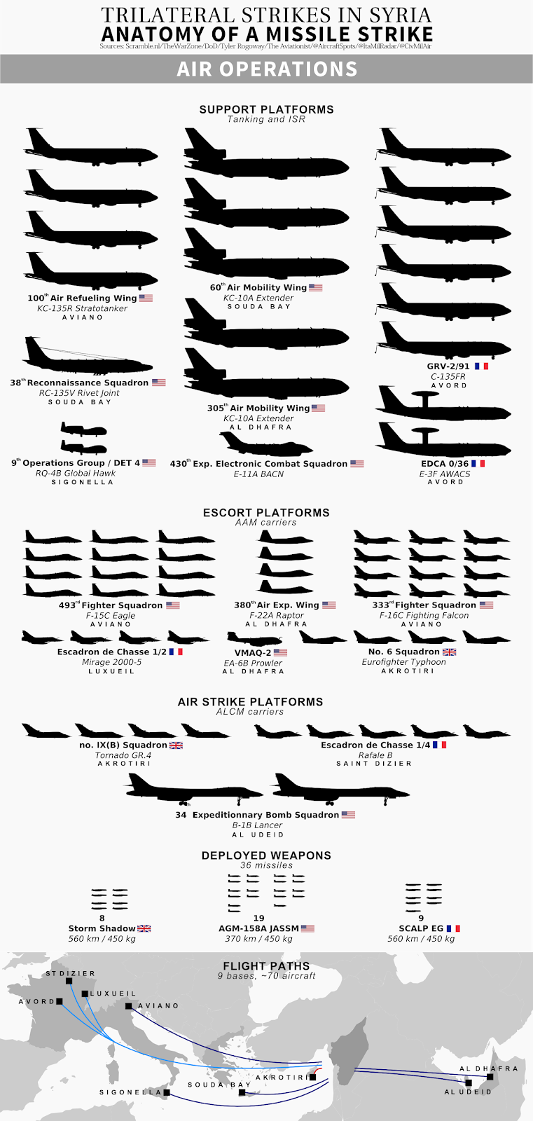Možný spôsob prevedenia náletu izraelského letectva 29.4.2018. Prelet cez Jordánsko a Irak, zamiešanie sa medzi letectvo koalície a útok cez územie kontrolované koalíciou a ich kurdskými bábkami. To územie nemá SAA velmi pokryté protivzdušnou obranou