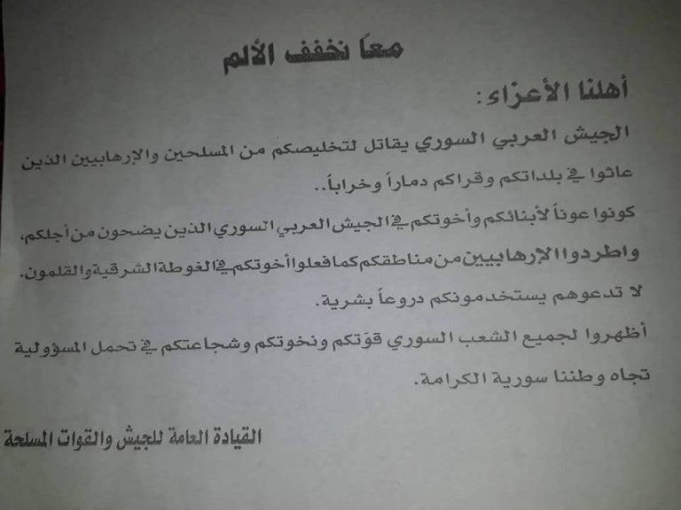 Daraa. Vrtuľníky SAA opäť zhodili v oblasti letáky s výzvou k rebelom o zmierení s vládou .