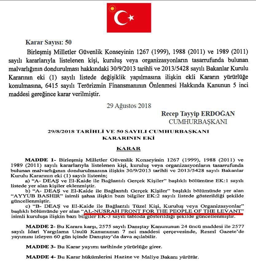 Turecko uznalo sdružení frakcí "Hayat Tahrir ash-Sham" (al-Káida) působící na severozápadě Sýrie, za teroristy.