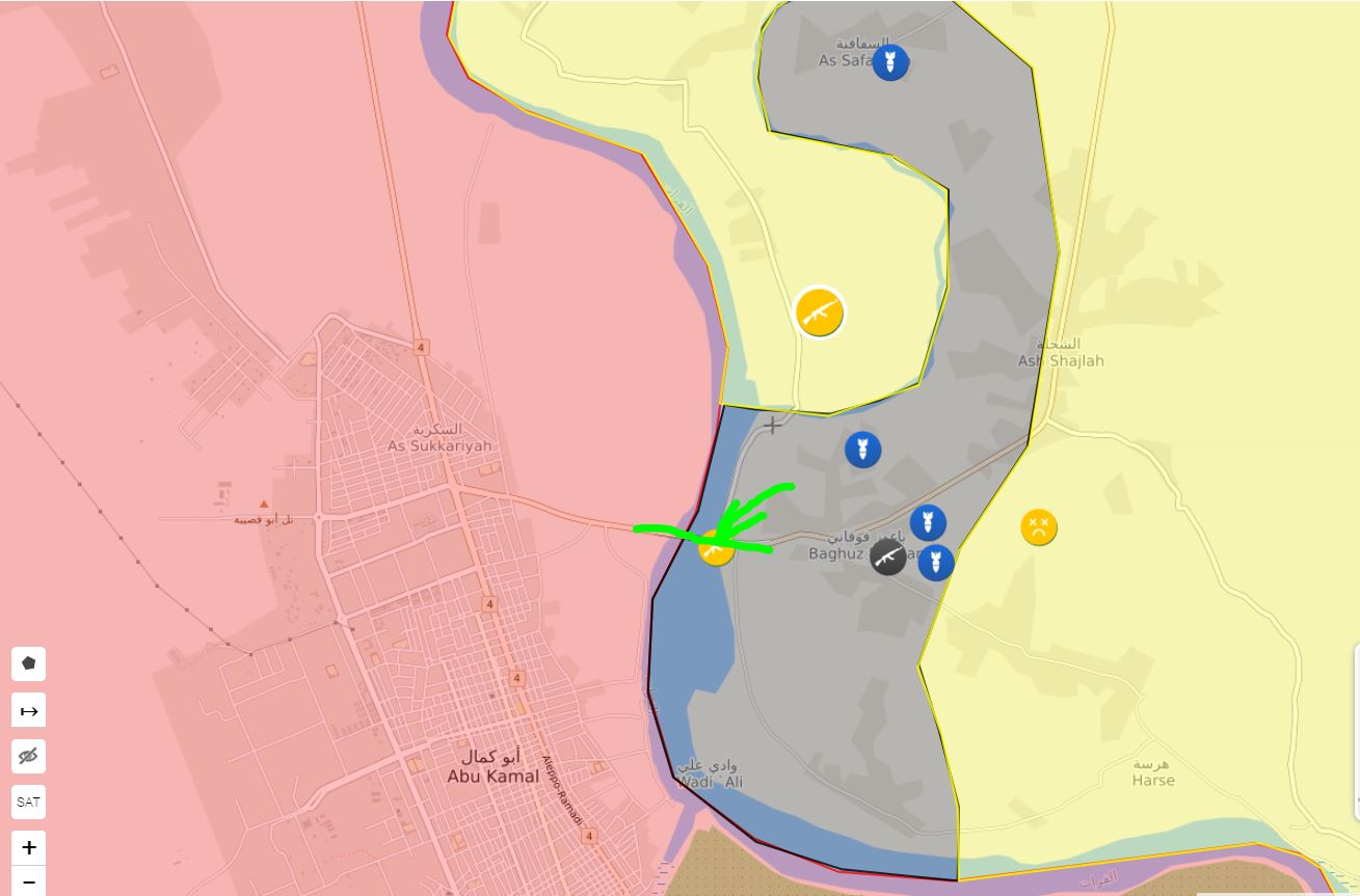 SDF úplne zachytila oblasť Shajilah, oblasť mosta Bukamal a časti Huwayjat al-Khanafirah, kde poslední ISIS militanti stále odolávajú bombardovaniu a útokom z 3 osí v zóne 1 km ^ 2 (približná situácia)