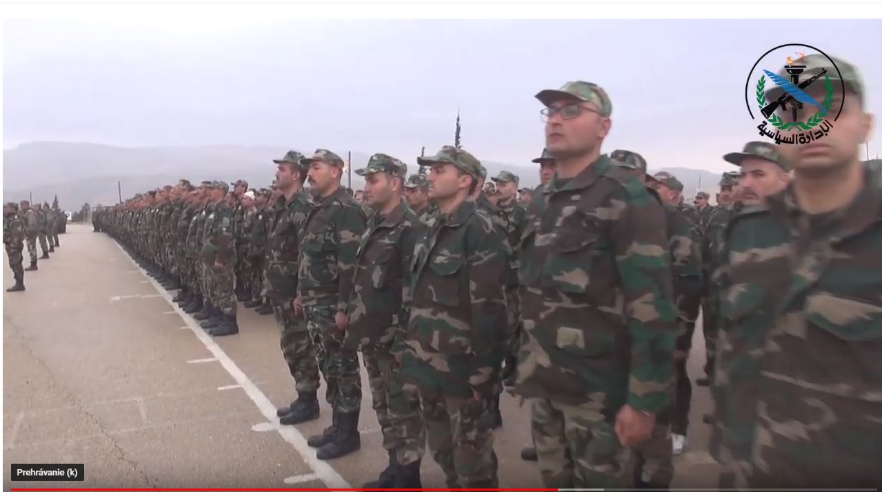 Slávnostný ceremoniál v Hama Governorate. Stovky vojakov sú zaradené do sýrskej arabskej armády.