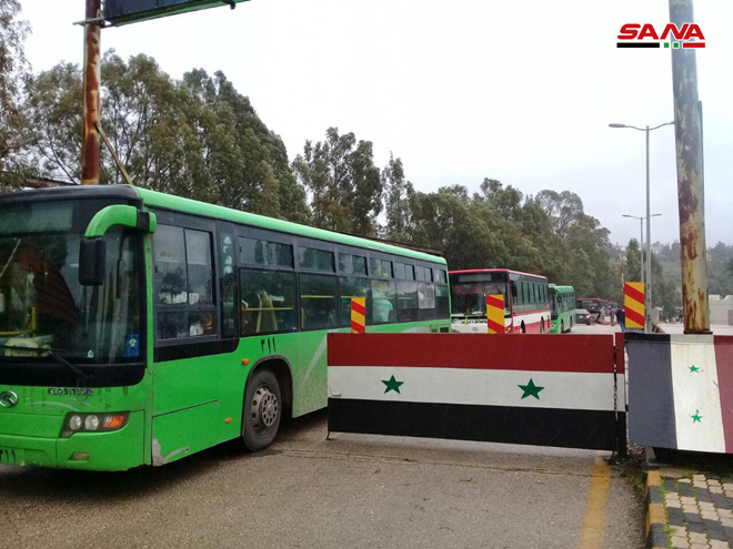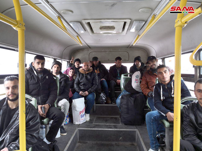 Korešpondent SANA v al-Dabusijskej oblasti Homs uviedol, že 22 autobusov prepravilo stovky Sýrčanov doh miest a dedín v severnom Homse, na vidieku Aleppa, Hama, Deir Ezzor a Damasku.