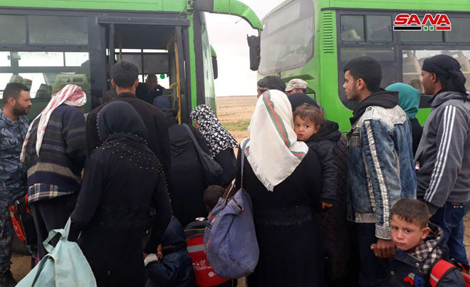 Homs, SANA - Nová várka vysídlených rodín dorazila na koridor Jalighem v sýrskej Badyia (púšti), z tábora al-Rukban po tom, čo ich tam roky zadržiavali proti svojej vôli . Po registrácii osobných údajov a prijatí potravinovej a lekárskej pomoci ich prevážali autobusy do stredísk dočasného bývania v Homse.