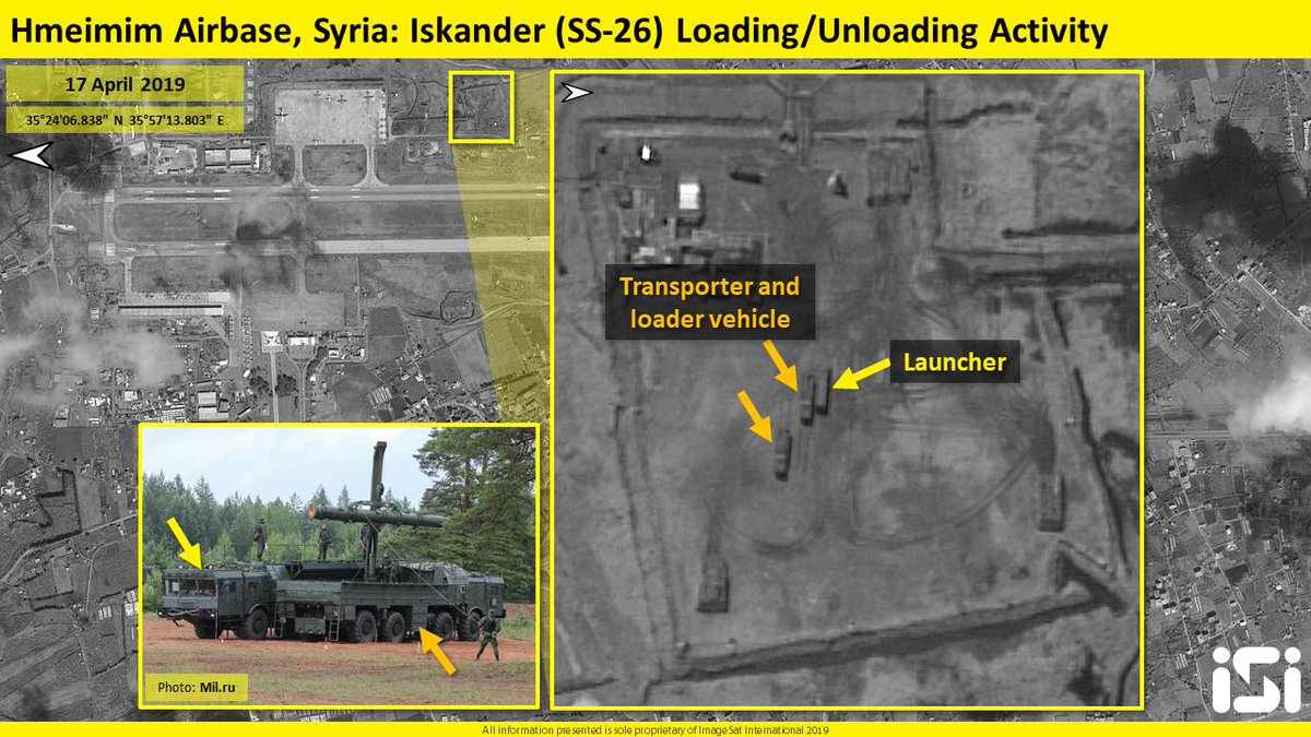 Satelitné snímky ISI ukázali nasadenie ruského raketového systému Iskander (SS-26) na leteckú základňu Hmeimim v blízkosti pobrežného mesta Jableh.
