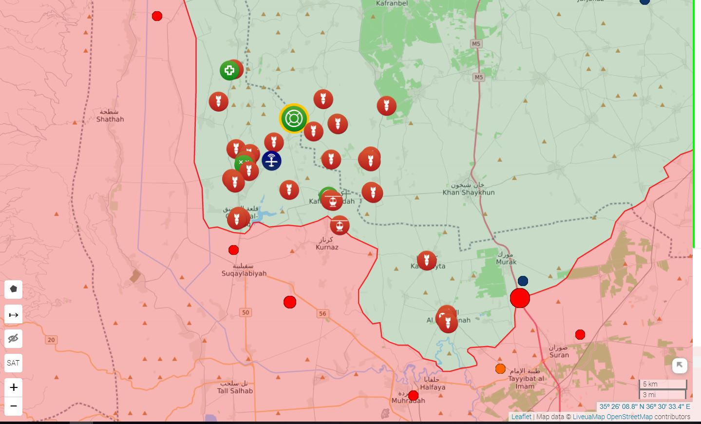 Zdroj zo sýrskej armády povedal Al-Masdar, že vzdušné sily sa zameriavajú na militantné miesta, nachádzajúce sa medzi mestami Ma'arat Al-Nu'man a Khan Sheikhoun, tiež zasiahli niektoré oblasti v Al-Ghaab Plain.