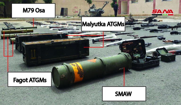 Podle Syrské arabské tiskové agentury (SANA), Syrská arabská armáda (SAA) odhalila několik zbraňových systému během operace v jižní oblasti země 1. května.