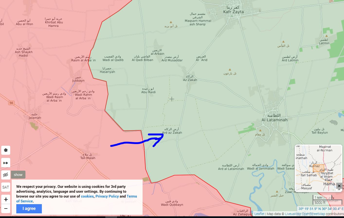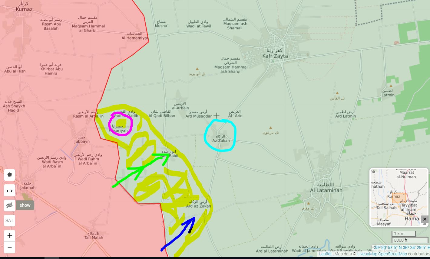 Podľa vojenského zdroja v s Hama, sýrska arabská armáda teraz dosiahla okraj Hasraya, ktorá sa nachádza západne od Zakahu.