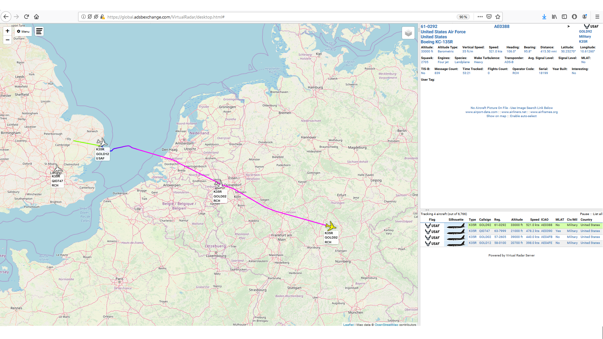 3ks KC135R Stratotanker smer ( podľa koridoru, ktorý bežne využívajú aj C17 z Nemecka v hojnom počte , prelet cez CZ aj SR ) Východné Stredomorie, resp.Stredný Východ