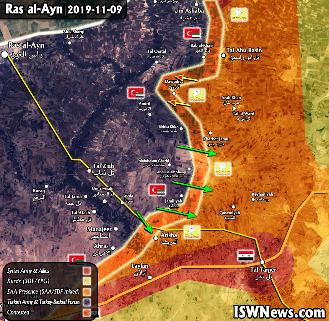 Zdroj uviedol, že tanky a delostrelecké jednotky SAA pomáhajú jednotkám SDF na frontových líniách v Abu Rasine, pričom niektoré jednotky SAA sa teraz zúčastňujú na samotnom protiútoku.