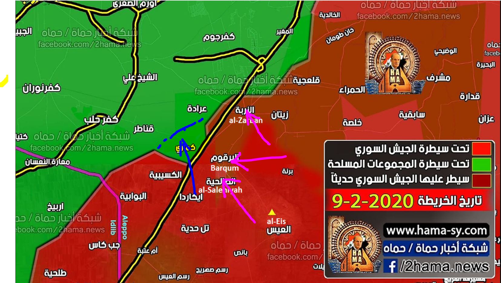 Sýrska armáda zabrala mestá Al-Zurbah, Al-Barqoum a Al-Salihiyah pozdĺž diaľnice Aleppo-Damašek.