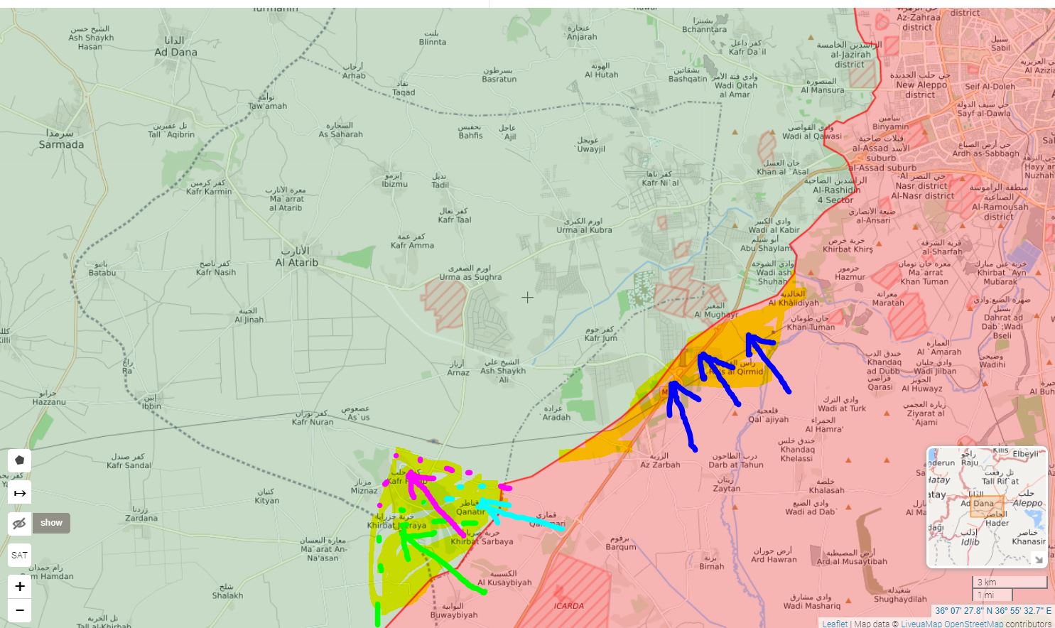 :sipka: Jihadi protiútokk, podporovaný tureckým delostrelectovm pri Saraqeb a Nayrab