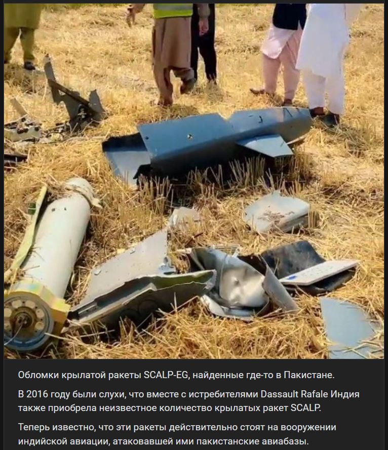 Zdroj https://vk.com/wall-123538639_4570791 z 11.05.2025V roku 2016 sa objavili fámy, že spolu s lietadlami Dassault Rafale získala India aj neznámy počet riadených striel SCALP.