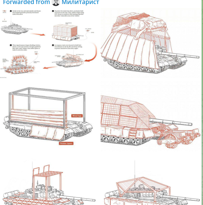 Text je doplnený aj starostlivo nakreslenými schémami, vrátane konštrukcie „tanku-sýpky“ s dreveným pancierom a tanku Abrams s dynamickou ochranou. Dajú sa jednotlivo rozkliknúť v odkaze: