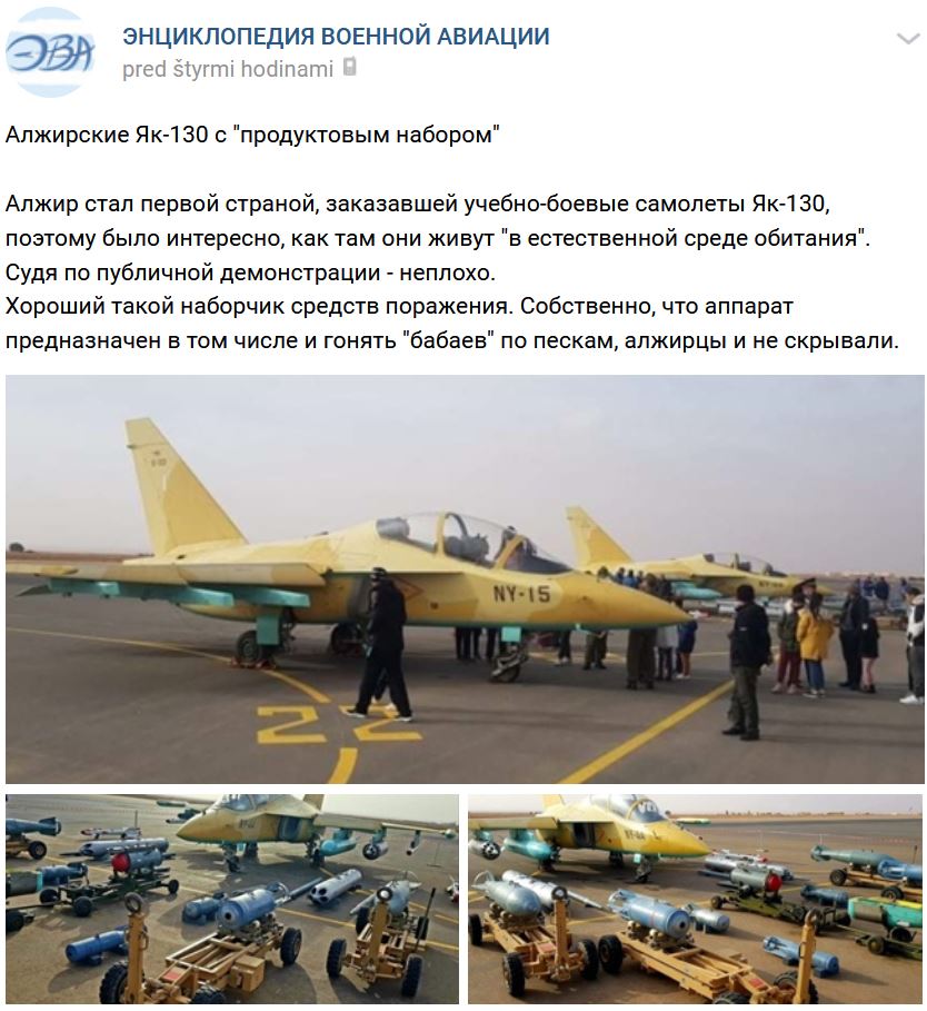 Alžírske Jak-130 s "potravinovými balíčkami"