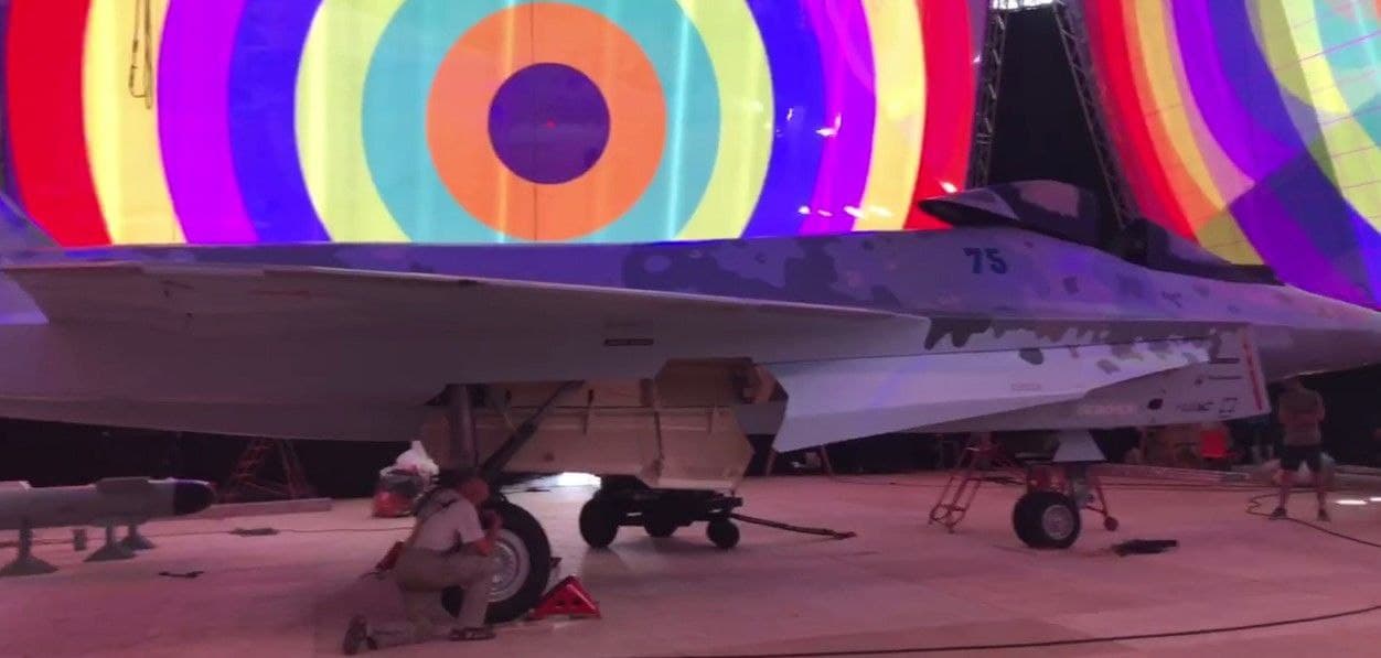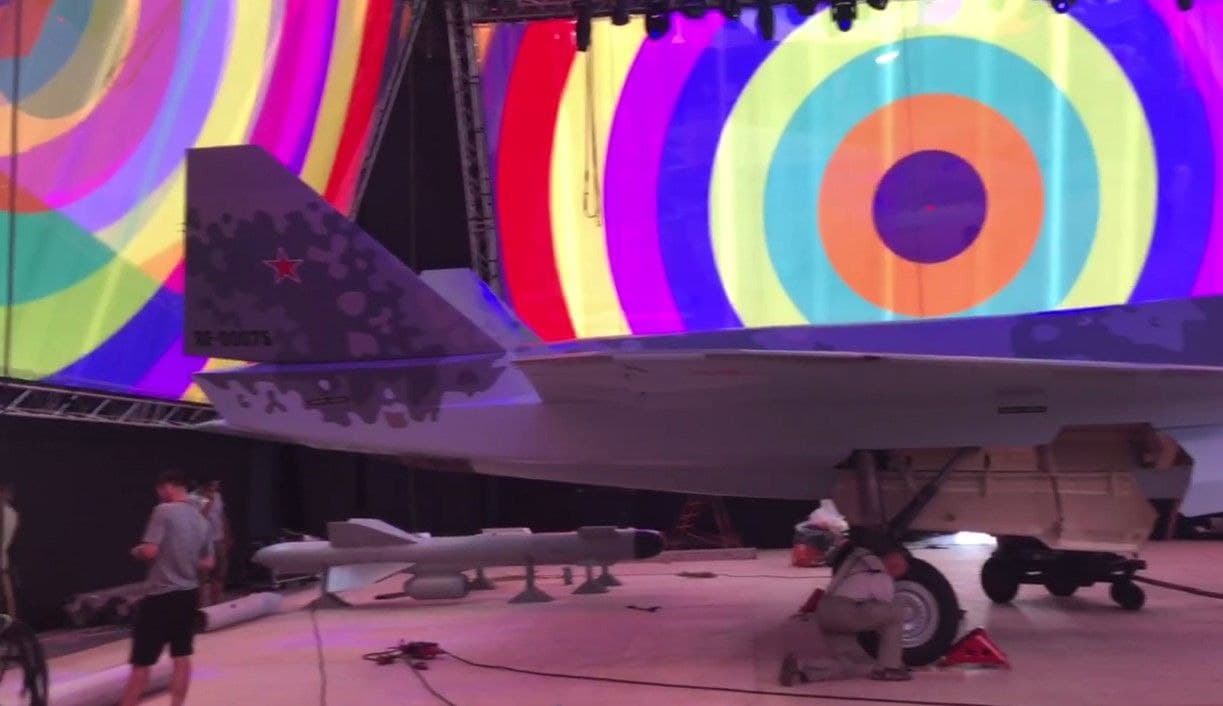 Překryt je úplně identický s tím na Su-57 a mají to ještě něčím potažené, aby to nemuseli leštit a sundají to až nakonec.