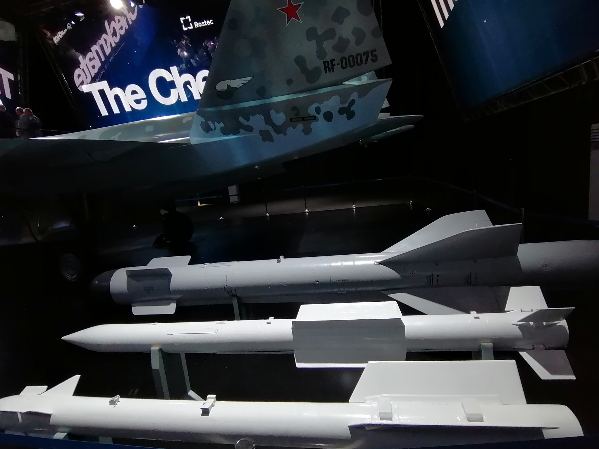 Detail na tu vystavenou maketu zkrácené R-77 s novými kormidly (skládacími?)